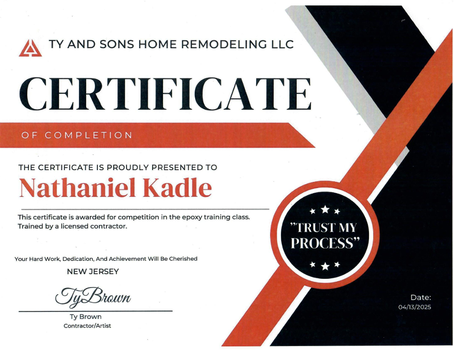 Epoxy Training Certificate of Completion